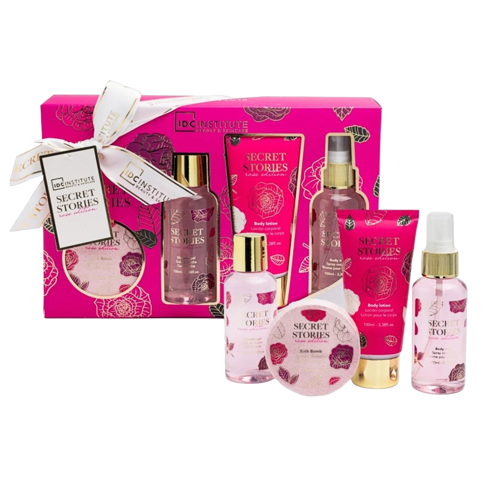 The IDC Institute – Secret Stories shower set is a complete package for body care and relaxation, offering a complete spa experience at home. This set includes a 100ml Shower Gel, 100ml Body Spray, 100ml Body Lotion and a 40g Bath Bomb, all designed to provide cleanliness, freshness and hydration to the skin. The shower gel gently cleanses the skin, the spray and lotion hydrate and keep it soft all day long, while the Bath Bomb adds a pleasant aroma and a relaxing experience to the water. This set is ideal for personal use or as a gift, creating a complete body care routine and a relaxing atmosphere at any time.