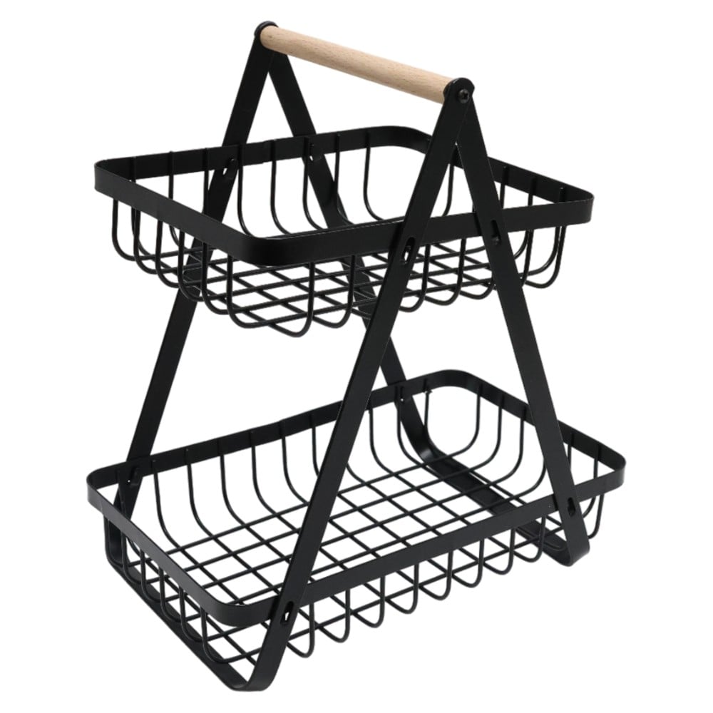 Shportë me 2 kate, metalike, e zezë, 14x22 cm