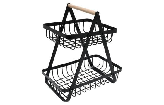 Elegant basket with two floors, made of metal in black color, with dimensions 14x22 cm. This product offers an excellent choice for displaying and serving antipasti, fruit, or desserts in an organized manner.