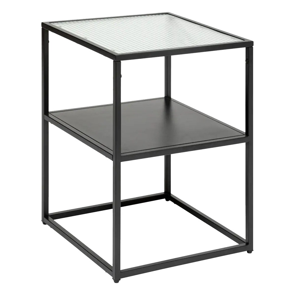 Side table, Adlir, metal/ tempered glass, black, 55x40xH40 cm