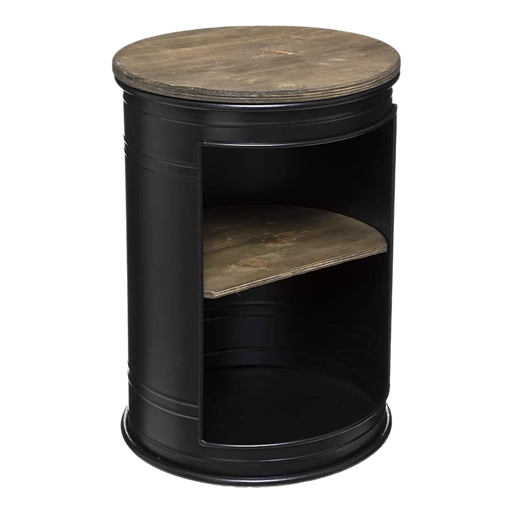 Small side table in black Diego. A decidedly industrial style that will seduce you. Original with its shape and its combination of steel and wood. This table has an internal shelf and dimensions 33.5xH47.5 cm.