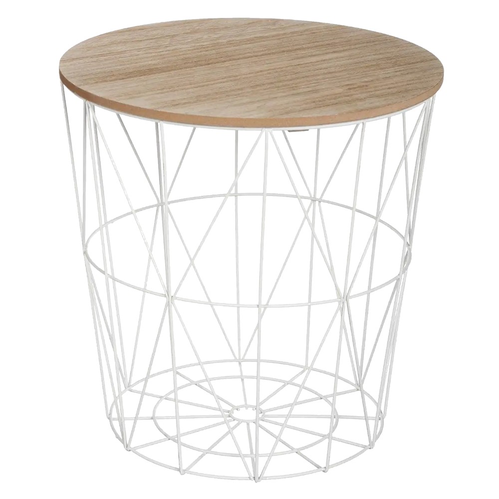 Side table, Kumi, metal/wooden, white/natural, Ø39.5xH41 cm