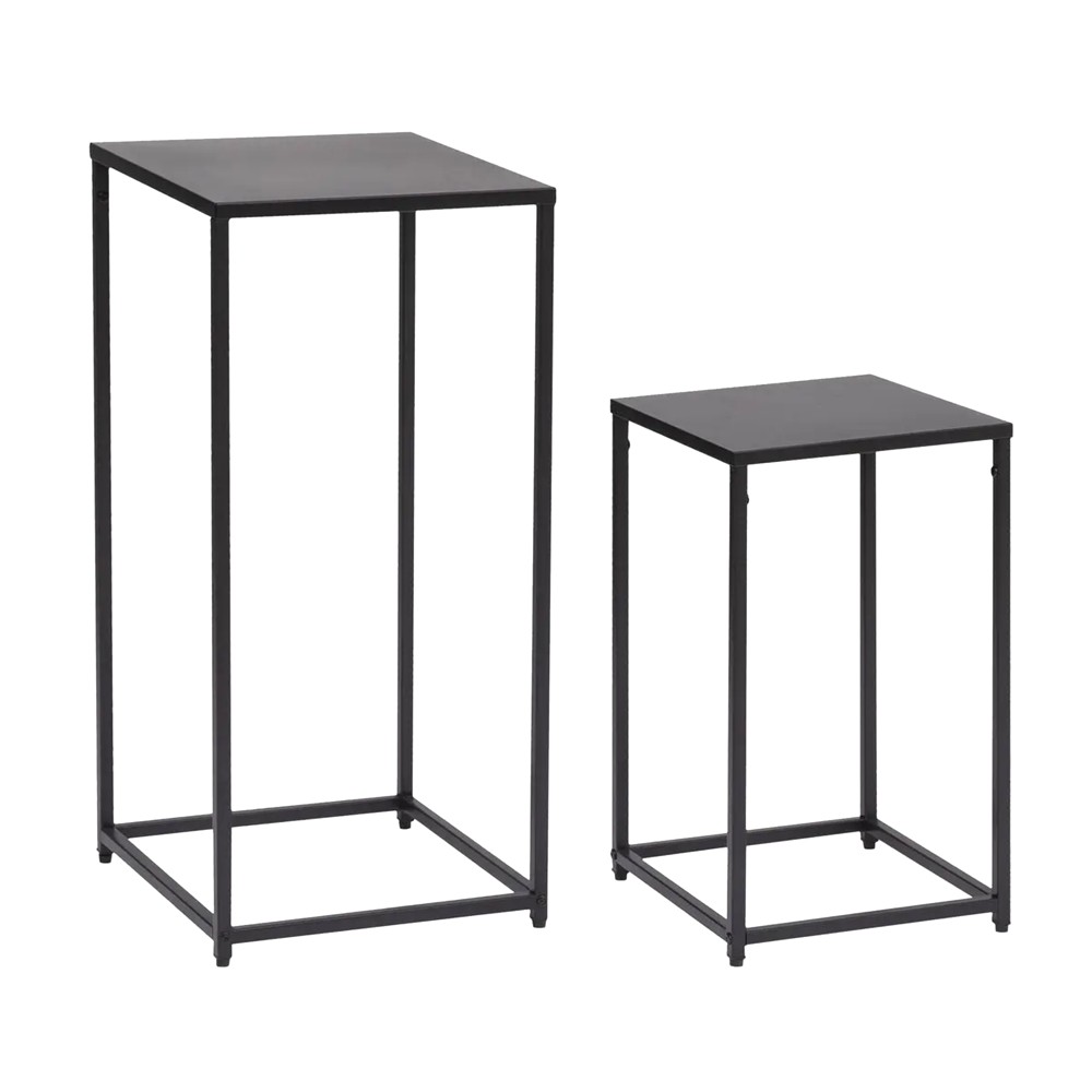 Side table, Glass, steel material, black color. Size 30x30xH54.5 cm and 34x34xH74 cm. Perfect for an alluring modern look brings contemporary style to your space. It doesn't matter if it is placed next to a sofa or next to a bed, corner tables are a favorite and very practical choice