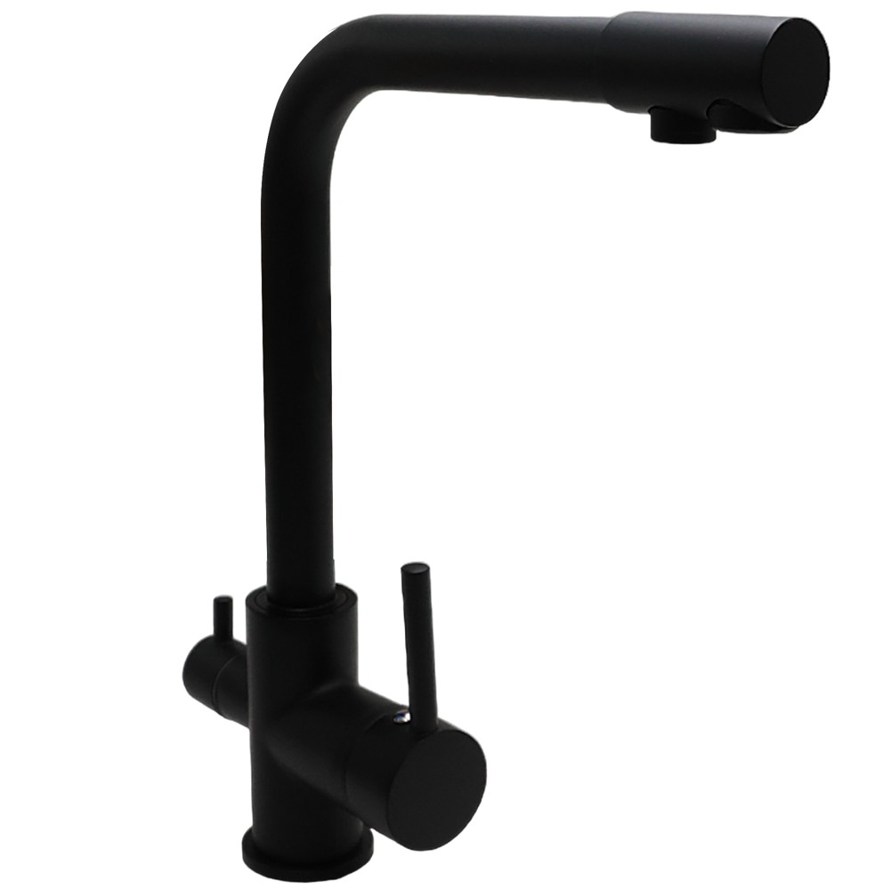 This sink faucet is an elegant and modern choice for kitchen environments. Its style is characterized by its square shape, which gives it a perfect and clean look. It is made of bronze, a material suitable for wet environments. Its color is black, which reinforces the feeling of modernity. Its flexible pipes are 1/2" in diameter, making it suitable for an easy and practical installation. This faucet offers an excellent combination between advanced style and high functionality, making it an excellent choice. for those who value aesthetics and quality in their kitchen equipment.