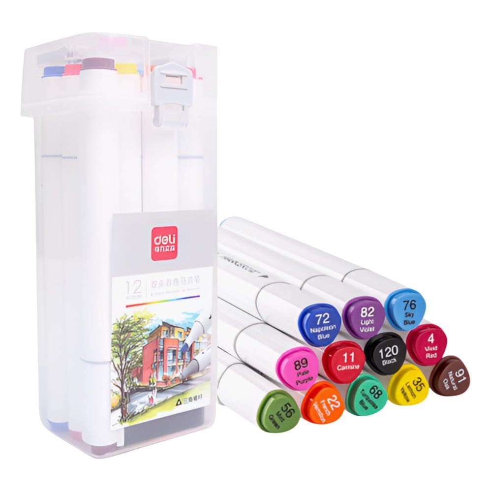 Sketch Marker, Deli, 2 tips, 12 colors, 1 pack