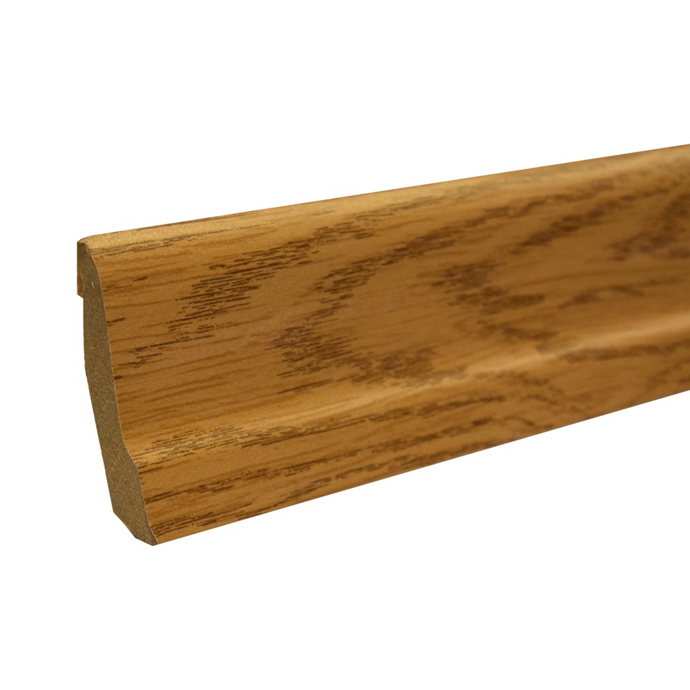 MDF skirting board perfectly covers the expansion joint of the floor. It is covered with wood-patterned foil and is secured with the mounting parts provided. Matching corners and edgings, skirting boards available.