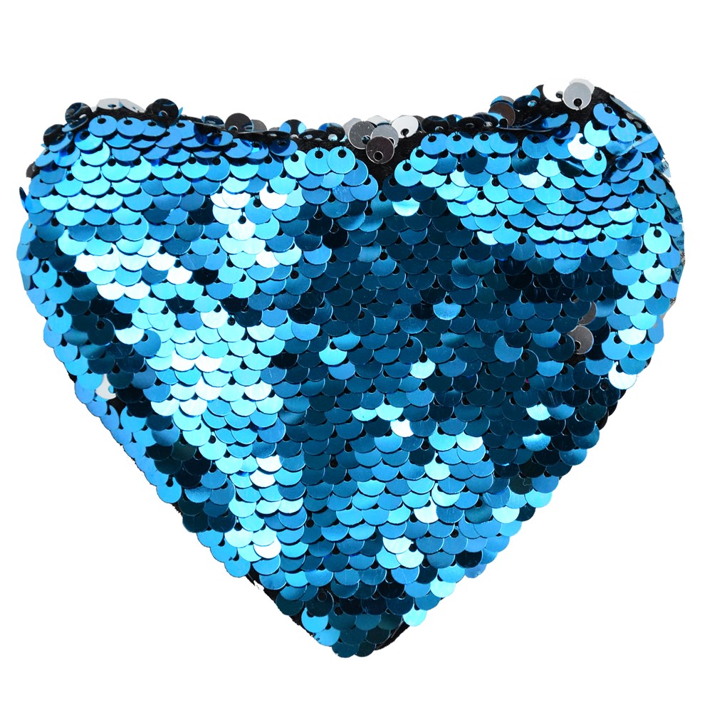 Small heart-shaped coin bag, for kids, with sequins design, which is made of textile and plastic material, in different colors. It is used to keep coins, self care products, cosmetic products, hairclips and small items, or other accessories for girls. This product is practical and it is suitable to use with sequin backpack (782429).