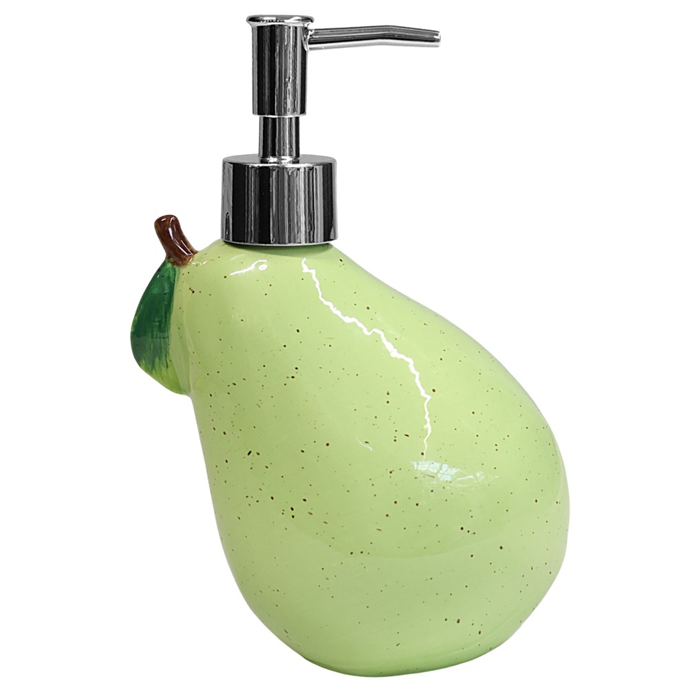 This green ceramic soap dispenser, designed in the shape of a pear, brings a touch of freshness and originality to your environment. The unique shape and the natural green color create a lively and pleasant atmosphere in your bathroom, making this accessory not only functional, but also decorative. The quality ceramic material is durable and resistant to moisture, while its smooth surface makes it easy to clean. The practical pump ensures controlled and hygienic distribution of liquid soap, turning its use into a unique and aesthetic experience.