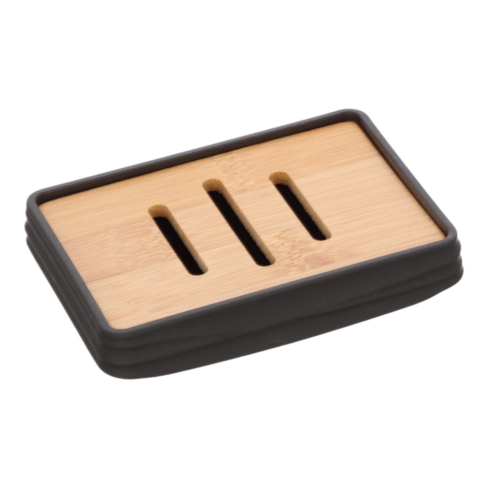 Soap holder ''Alabama'' in ABS, bamboo black, natural wood color. Dimensions, H : 2.5 cm, L : 11.5 cm, D : 8.5 cm