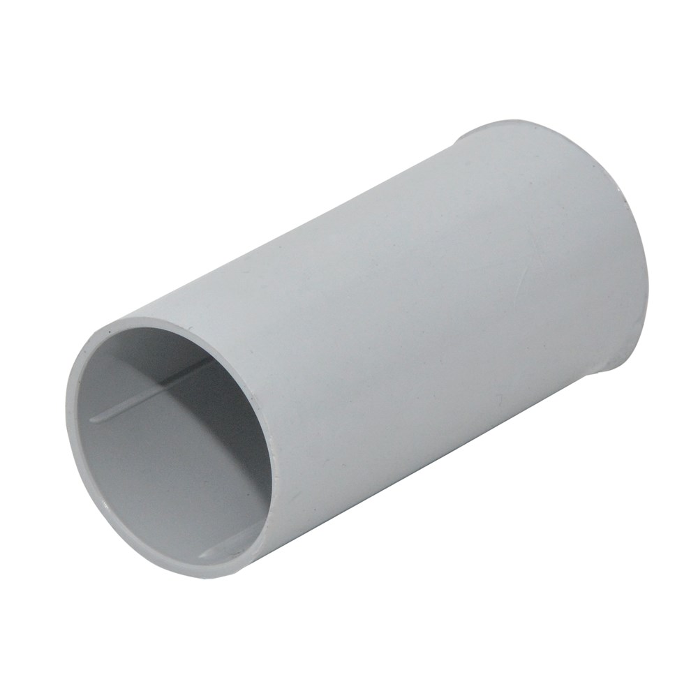 Pipe coupling. Route electrical cables and conductors with the flared PVC conduit. The PVC conduit is heat- and corrosion resistant.Suitable for civil and industrial use.