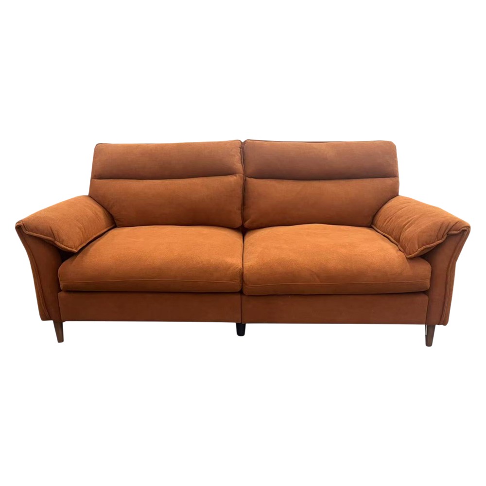 This 2-seater sofa, covered in warm and vibrant orange fabric, brings energy and character to any space in your living room. The solid wood frame ensures durability and stability, while the thin plastic legs give the sofa a modern and refined look, perfectly combining strength with elegance. With dimensions of 208x87xH95 cm, it offers ample space for two people, making it the ideal place for relaxation, quiet conversations or fun moments with family and friends. The orange color brings a lively and warm nuance to the environment, turning the sofa not only into a functional piece of furniture, but also into a decorative element that gives character and style to your room. This sofa combines comfort, modern design and a unique color, making every moment spent on it a pleasant and aesthetic experience.