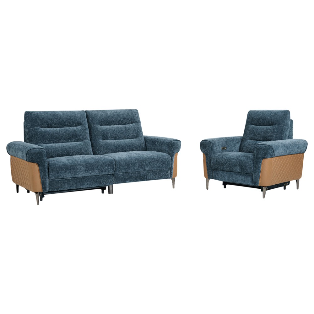 You're reviewing:Sofa+armchair, textile+leather upholstery, metal feet, dark blue/brown, (200x94xH103 cm)x(105x94xH103 cm)