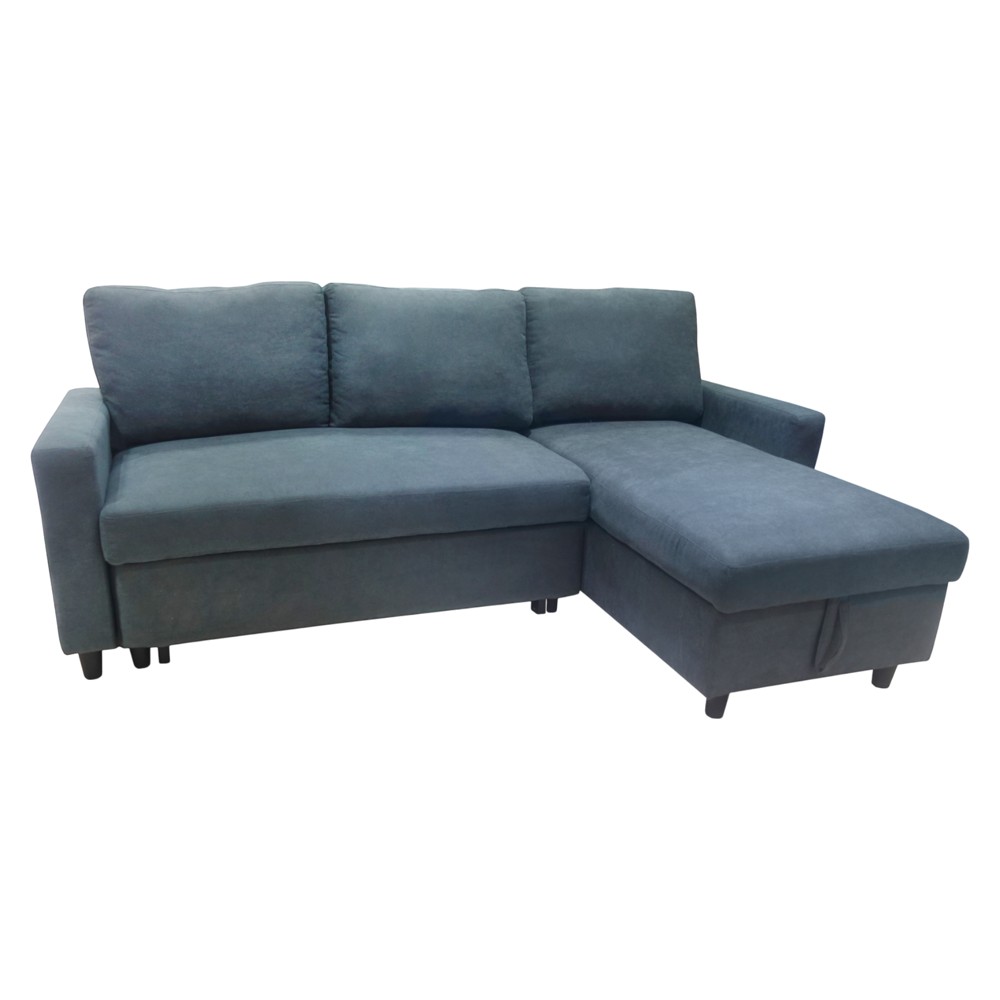 You're reviewing:Sofa bed, textile upholestry, wood frame, plastic feet, dark blue, 211x138xH88 cm