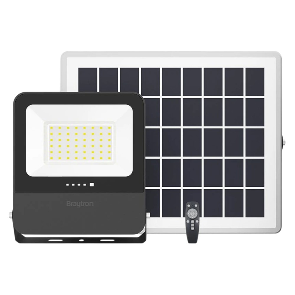 LED floodlight with solar panel, power 50/150W, luminous flux 1800 lumens and adjustable light temperature 3000–6400K. Provides up to 12 hours of operation after charging and has IP65 protection, suitable for powerful outdoor lighting without connection to the electrical network.