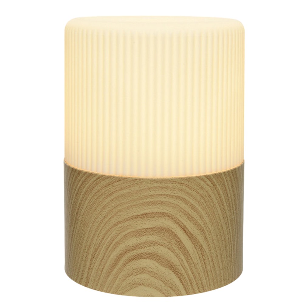 Solar panel table lamp, diameter 15 cm and height 21 cm, made of white plastic and wood. This lamp offers a warm white light, creating a calm and pleasant atmosphere. The modern and natural design makes it suitable for tables and indoor environments, bringing a touch of elegance and simplicity.