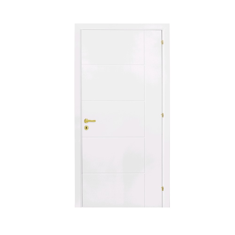 Solid interior wooden door, without rebate, contemporany1, with left and right opening 90x205 cm, 15 cm wide frame, white color