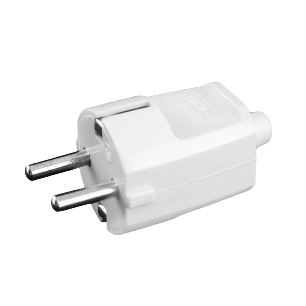 White electric plug .This 16A polarized household plug is ideal small appliances. Use it to replace worn or damaged plugs.