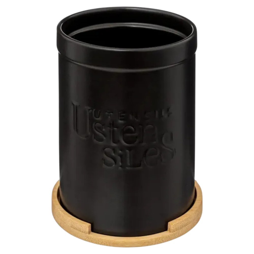 The “Natureo” spoon and fork holder in black is made of ceramic and natural bamboo, combining modern elegance with durability. With a diameter of 12.8 cm and a height of 18 cm, it provides ample space to keep spoons and forks organized and easily accessible. The simple design and natural materials make this holder not only functional but also a sophisticated decorative element for any kitchen or table.