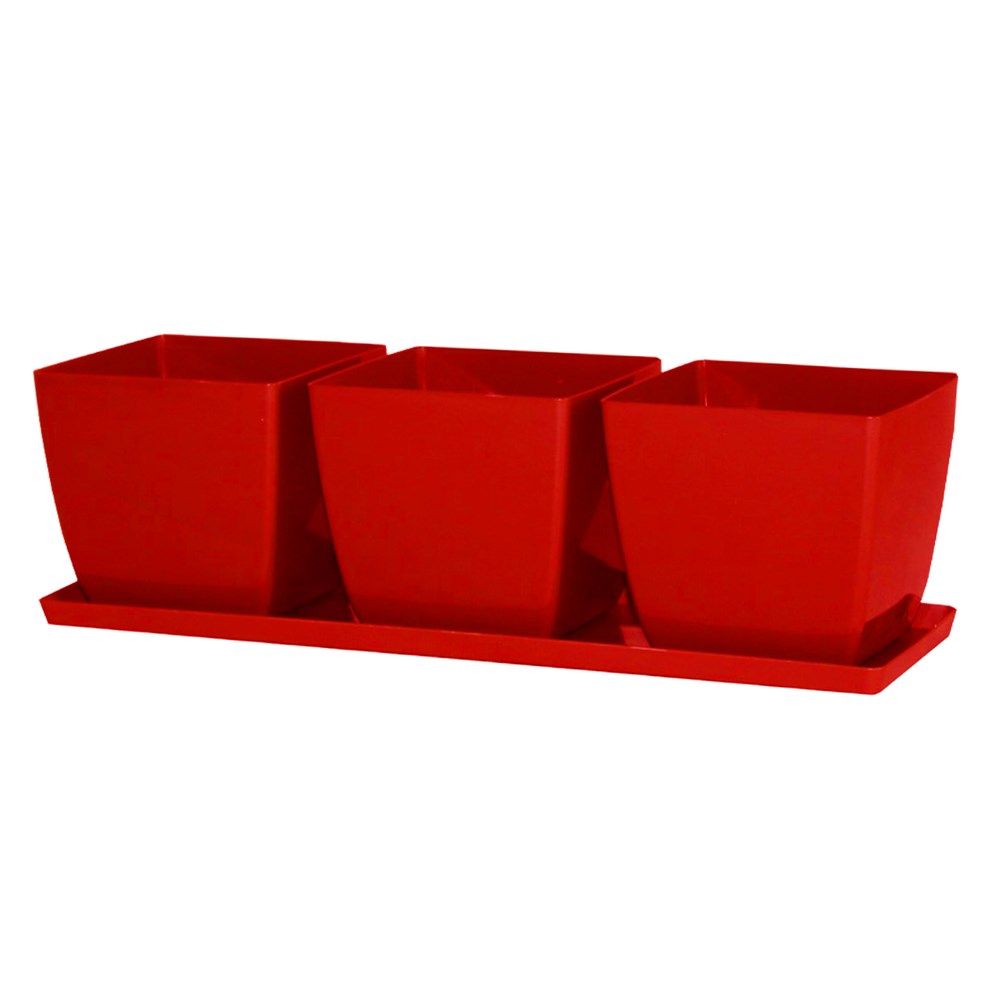 Square flower pot set of 3 pieces, TRIO, plastic, red, 35x11xH10 cm