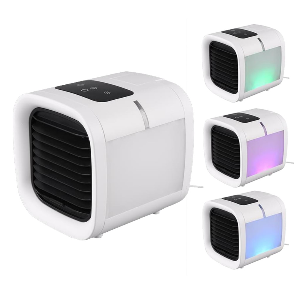 Square table fan, White color, plastic, 16.5x16.5x17.4 cm