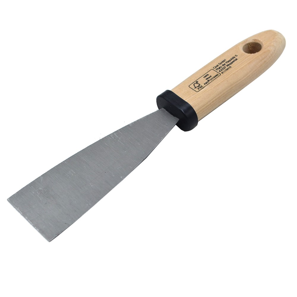 Stainless steel spatula, 40 mm, wooden handle