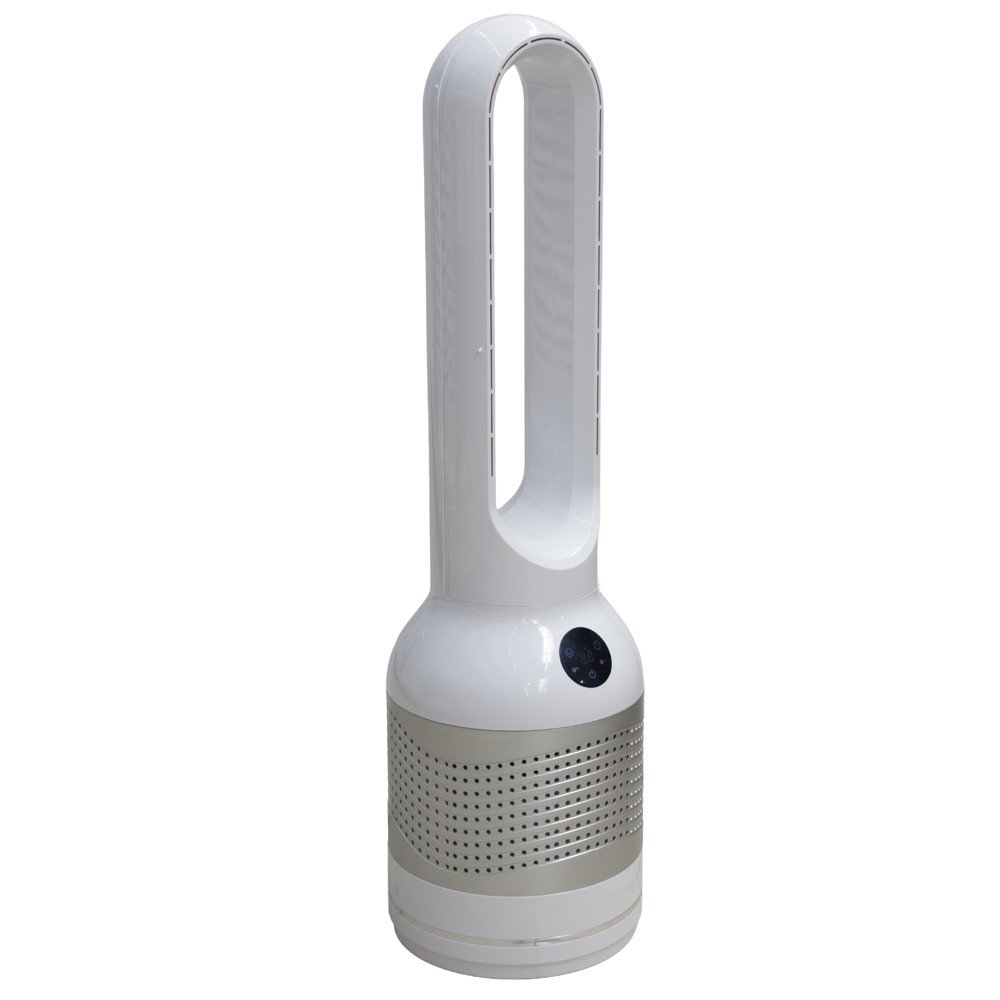 Stand fan without blades. It has 8 speeds and swing function. Complete with control panel, remote control and timer. Power: 30 W, power supply: 220-240V ~ 50Hz. Height: 80 cm