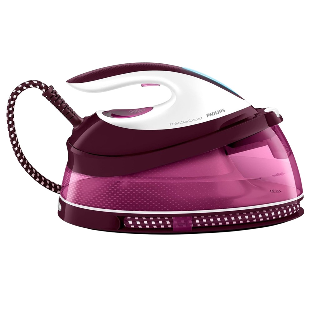 Powerful non-stop steam ensures fast ironing of all your clothes – without any need to adjust the temperature thanks to our OptimalTEMP technology. Compact and lightweight for easy use and storage. The 1.5 liter transparent tank gives you 1.5 hours of continuous use. You can clearly see how much water is left and fill easily with running water through the large filling hole. The auto-off feature automatically turns off your steam generator iron if it has not been used for a few minutes. This saves energy and gives you peace of mind. The lightweight, compact size is perfect for storage and fits comfortably on the ironing board. Exclusive ProVelocity technology makes our steam generators smaller and more compact than ever. Save energy and get the same great results. ECO mode reduces energy consumption for clothes that require less steam. Thanks to our OptimalTEMP technology, we guarantee that this iron will never cause burns on any fabric suitable for ironing. You can leave the hot ironing surface directly on the clothes or on the ironing board without worrying about damage. Guaranteed. Iron everything from silk clothes to jeans without temperature control. Thanks to OptimalTEMP, there is no need to adjust the temperature scale or settings. So no more pre-sorting the laundry or waiting for the iron to heat up and cool down. You are ready for any fabric at any time. Lock your iron securely to the base station to easily carry it around the house and reduce the risk of accidentally touching the hot ironing surface. Our built-in Smart Calc Clean descaling system reminds you when you need to descale. Includes a container for easier descaling. That means no cartridges and no additional costs. Our special SteamGlide soleplate glides smoothly over any fabric. It is also non-stick, scratch-resistant and easy to clean. Strong, continuous steam smooths even the thickest fabrics with ease. Watch stubborn creases straighten with an extra boost of steam right where you need it. This extra steam is ideal for vertical steam ironing to refresh clothes and curtains.