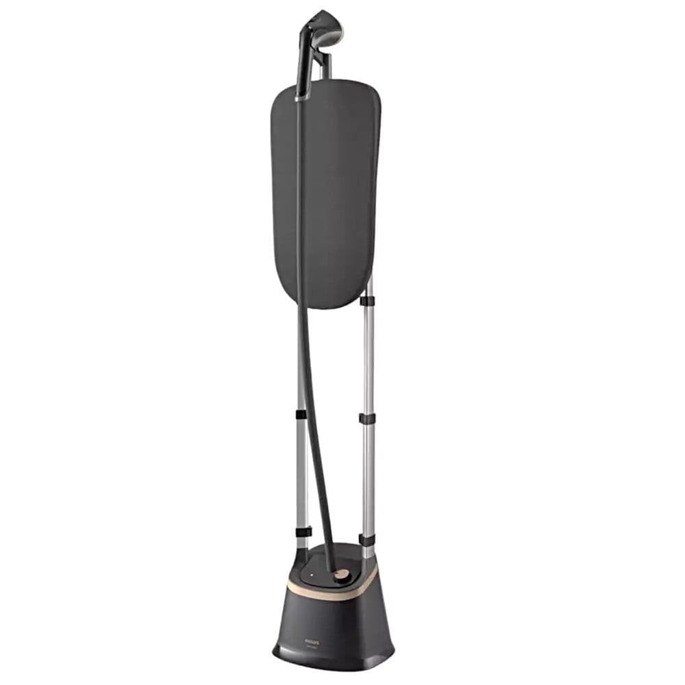 Spend less time de-creasing your outfits with the Philips Stand Steamer 3000 Series thanks to its integrated board and large pointed steamer. Keep your wardrobe germ free* and add scented freshness with the MyEssence fragrance infuser. The tilting StyleBoard provides reliable support during steaming. Simply press the fabric between the steam plate and board for easier steaming with crisp results from top to bottom. Heats up in under 60 seconds, so you are ready in no time. Whenever you need it, the stand steamer is ready to use in less than 60 seconds, ideal for those last minute outfit choices. Our innovative MyEssence fragrance infuser lets you refresh clothing withyour favourite scents anytime you choose. 3 steam settings with high continuous steam rate. Set your preferred steam setting for optimal results on different fabric. Uselow steam for thinner fabrics and a more powerful setting for thicker fabricsand coats. Besides de-wrinkling, 3000 Series also refreshes clothes (and soft furnishings, curtains, toys) and removes odors by killing up to 99.9% of bacteria. Large 2 L water tank, lasts longer between refills.
