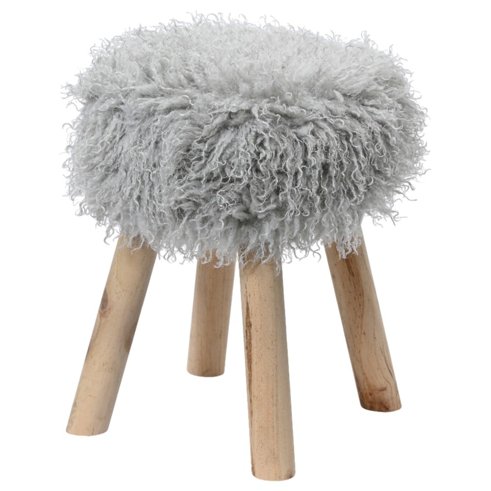 This decorative stool, measuring Dia.30xH38 cm, features MDF legs and a polyester seat in a grey color. Its modern and simple design makes it suitable for use in various rooms of the home, such as the living room, bedroom, or hallway. The seat covered with fur provides a soft and comfortable feel, while the MDF legs ensure stability and durability. A practical and stylish choice for any space.