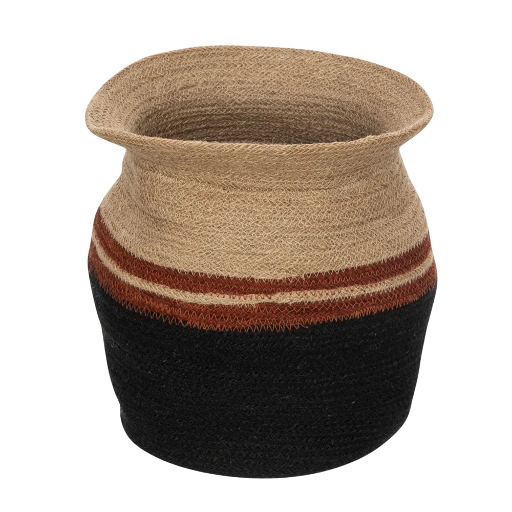 Round-shaped storage basket, size S. It is used for placing and storing various items, clothes, children's toys, magazines or other accessories, while also helping to optimally organize different indoor spaces. The basket is made of jute material, which makes it durable and lightweight at the same time. This product is suitable for use in bedrooms, living rooms or bathrooms.