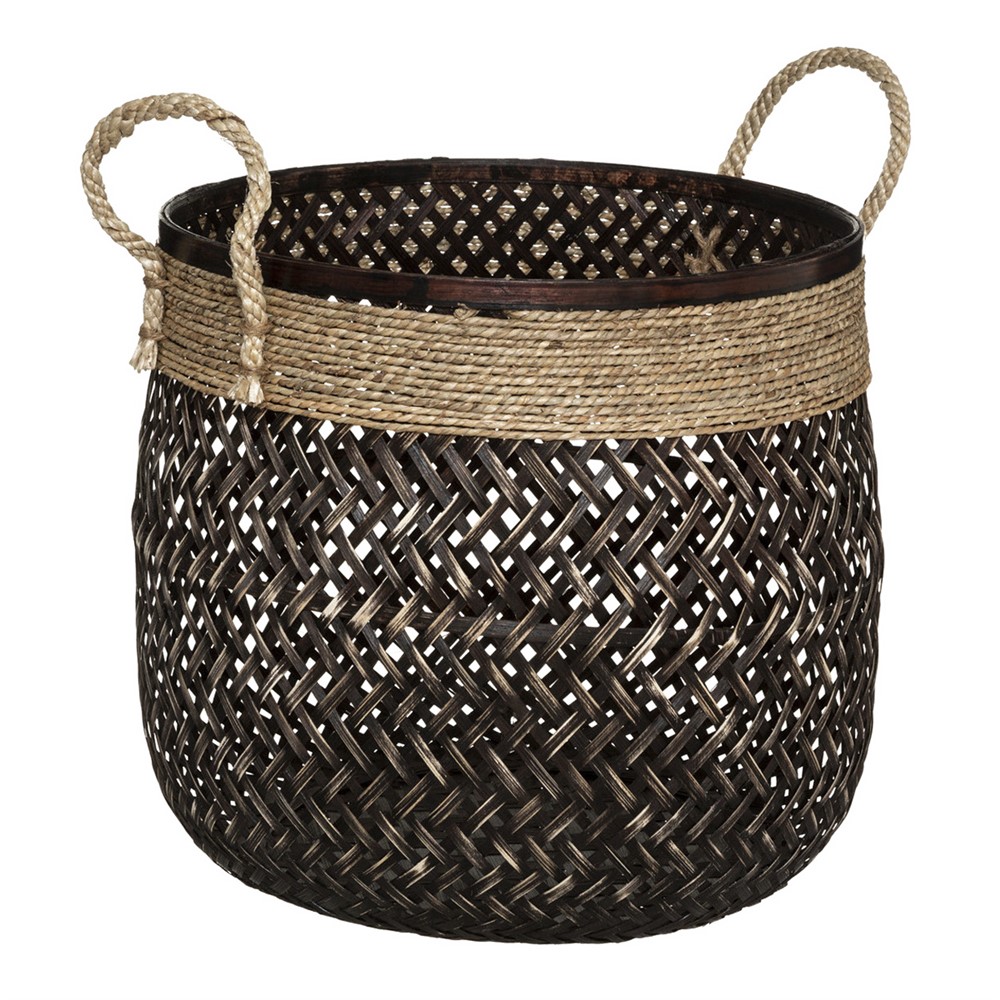 Storage basket, M, bamboo/jute, brown/black, Ø34 xH30 cm