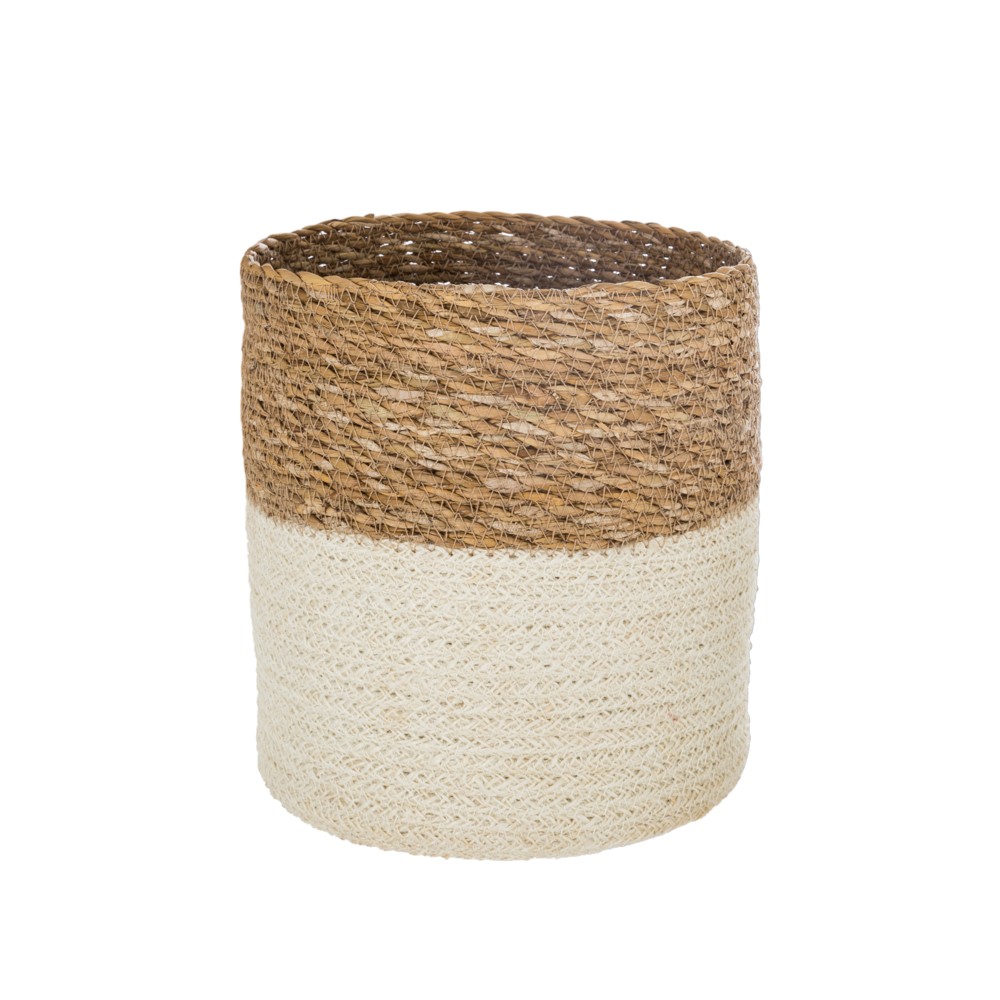 Round-shaped storage basket, size S. It is used for placing and storing various items, clothes, children's toys, magazines or other accessories, while also helping to optimally organize different indoor spaces. The basket is made of jute material, which makes it durable and lightweight at the same time. This product is suitable for use in bedrooms, living rooms or bathrooms.