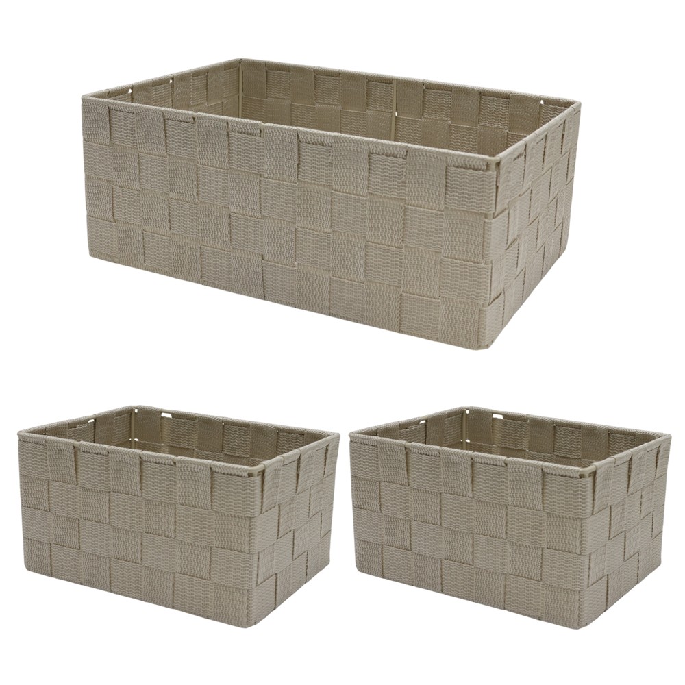 Storage basket set, 3 pieces, nylon, beige, L- 32x22xH12 cm, 2xS- 20x15xH12 cm