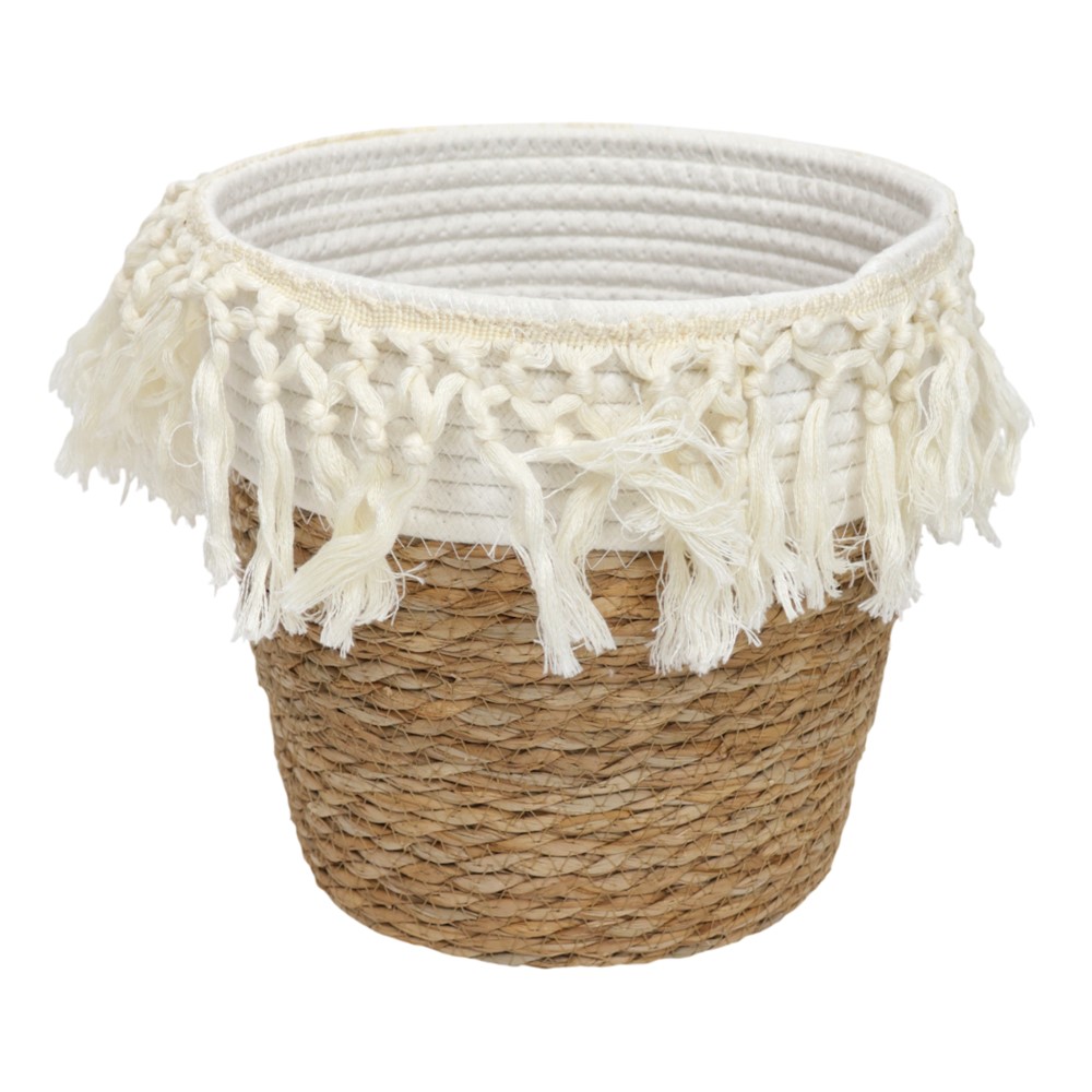 The storage basket made of straw material and combined with a boho style, is a very fine and elegant accessory that should be added to the category of products that you need. The white color combined with that of natural wood adds a very pleasant aesthetic appearance and that will fit perfectly with your furnishing style. It comes in dimensions Ø26xH23 cm and has a considerable space to organize various items. It can be placed in different spaces where you want and you can also use it in compositions. If you have an artificial tree and want to add a stylistic effect, you can also use it in the form of a vase. The ideal product with many functions that will look perfect in any of your spaces.