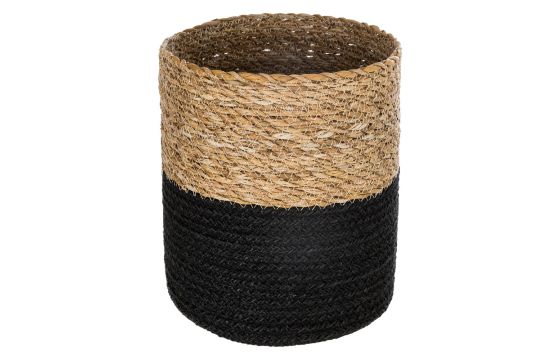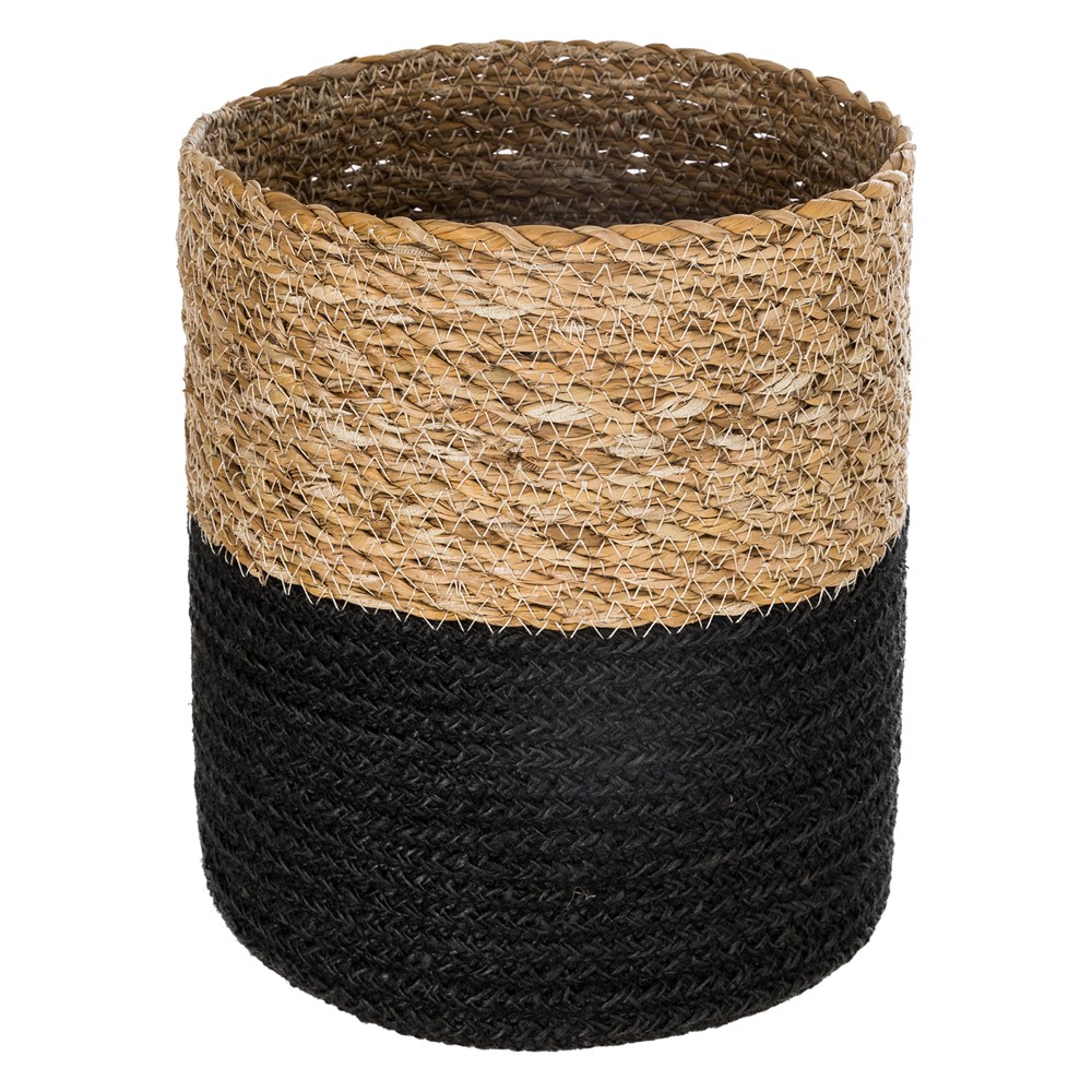 Storage bin, circular, sea straw, brown/black, M-21xH21cm