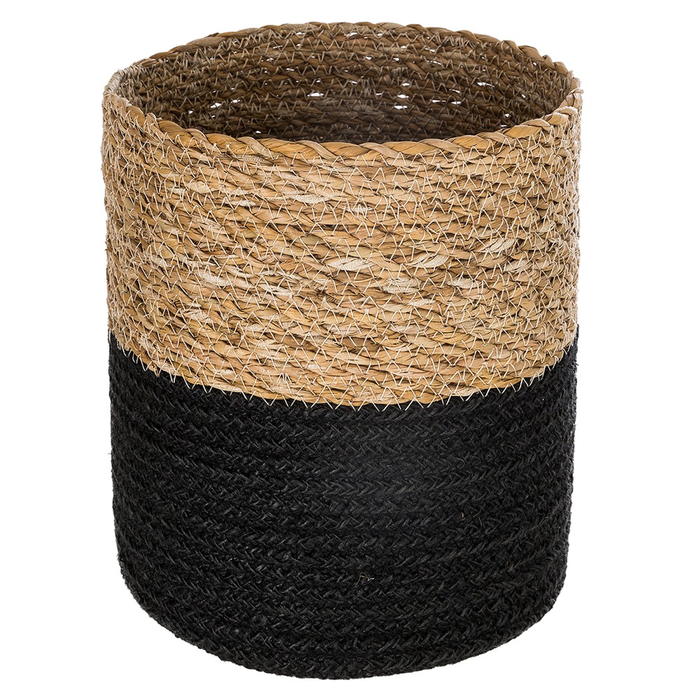 Storage bin, circular, sea straw, brown/black, XL-27xH27cm