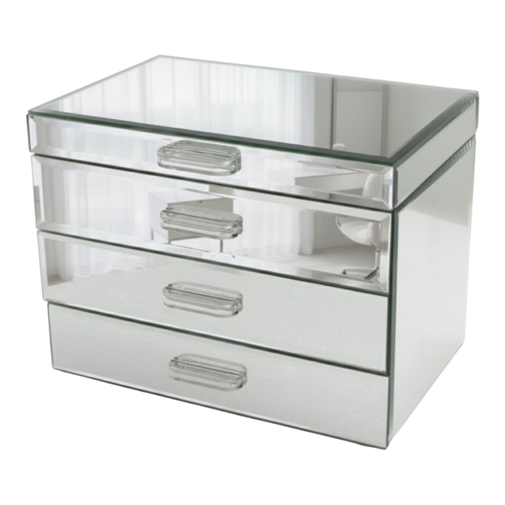 Organize your jewelry in style and elegance with this resin and mirrored glass storage box. Designed in grey color, this box is more than a practical solution, it is also a decorative accessory that adds charm to any dresser, table or shelf. With dimensions of 24x16x18 cm, it offers ample space for rings, pendants, earrings or other accessories, keeping them organized and easily accessible. The combined structure of durable resin and reflective glass creates a modern and luxurious effect, which reflects light and adds brightness to the space.