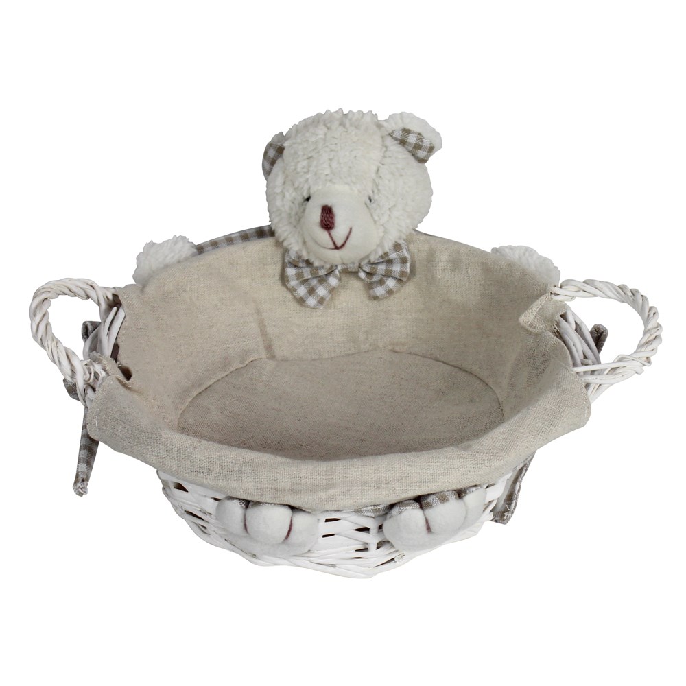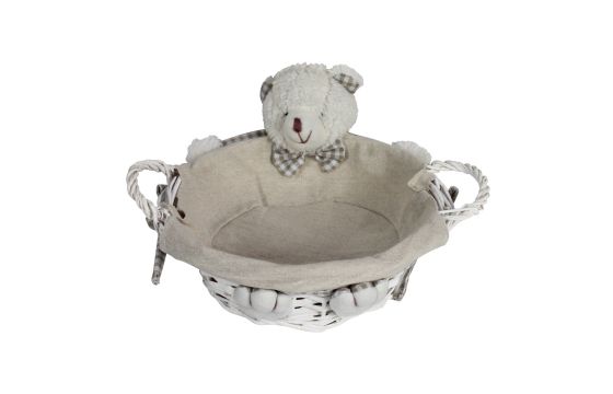 Storage box, willow and textile, cream, Ø24 xH8-13 cm