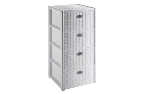 Storage shelf in white with 4 drawers with comfortable plastic structure and very elegant. Suitable for home environments, which provides a good space to put clothes, shoes or other items.