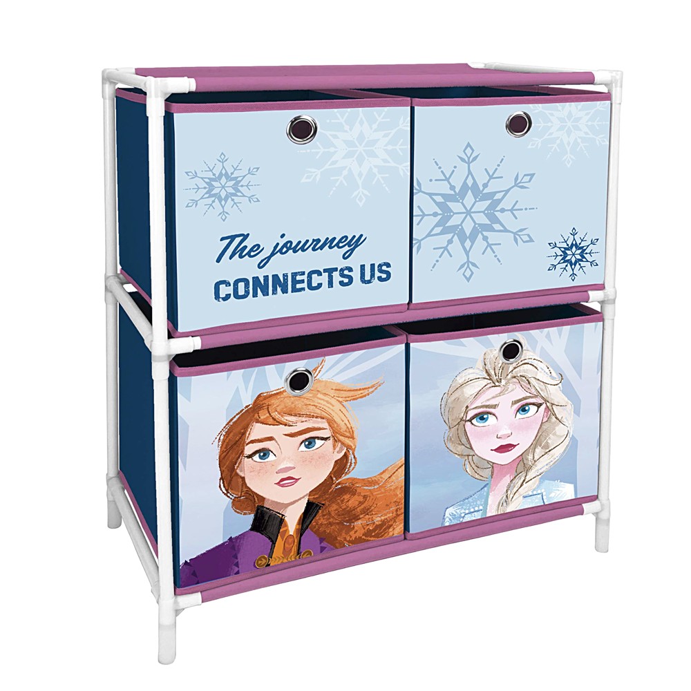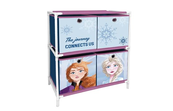Storage for children's room with Disney design and size 53x30x60 cm, which serves as both storage and decoration. Made of polyester material and fully movable plastic structure. Easy to clean and assemble. It consists of four drawers. Modern and attractive design for children.