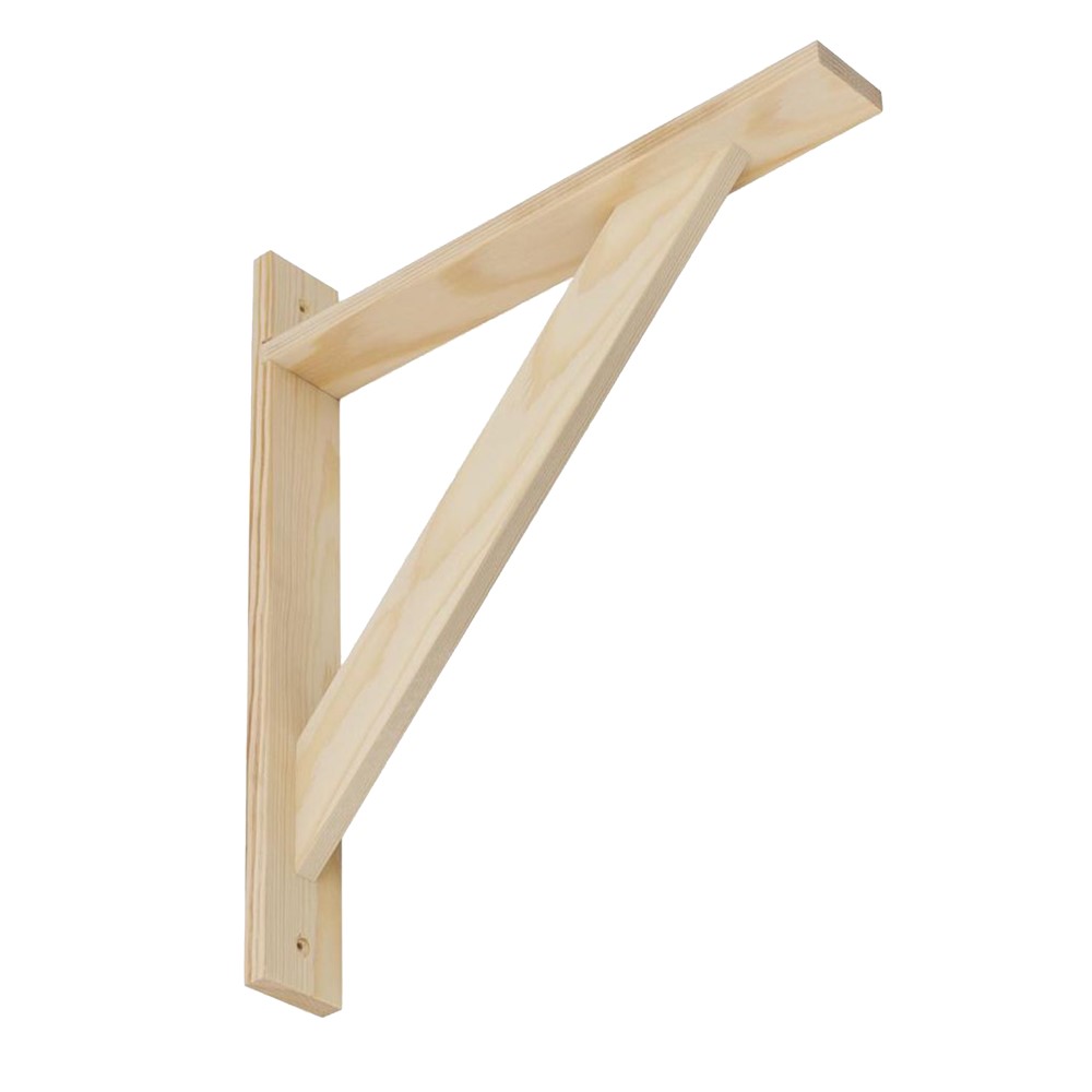 Reinforced plywood bracket, made of pine wood material, in natural color, with dimensions of 17x23 cm, which serves as a functional accessory for different environments. The constituet material is resistant to use and heavy weights, as well as it can be easily coated with any colour of paint, varnish or wood stain. It is used for wall mounting of self-supporting shelves, made of the same material, and it can find application in professional and non-professional environments.