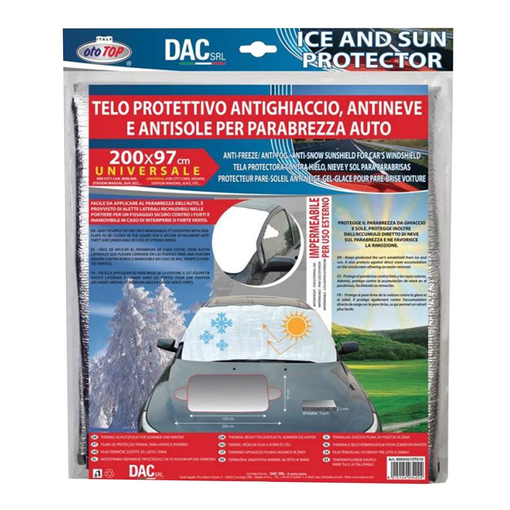 Ideal for protecting the glass surface from frost and the presence of ice. Easily applicable thanks to the catch through the car doors. The presence of different layers makes it impossible for ice to penetrate and create ice in the car window. It also protects the interior from Solar radiation.