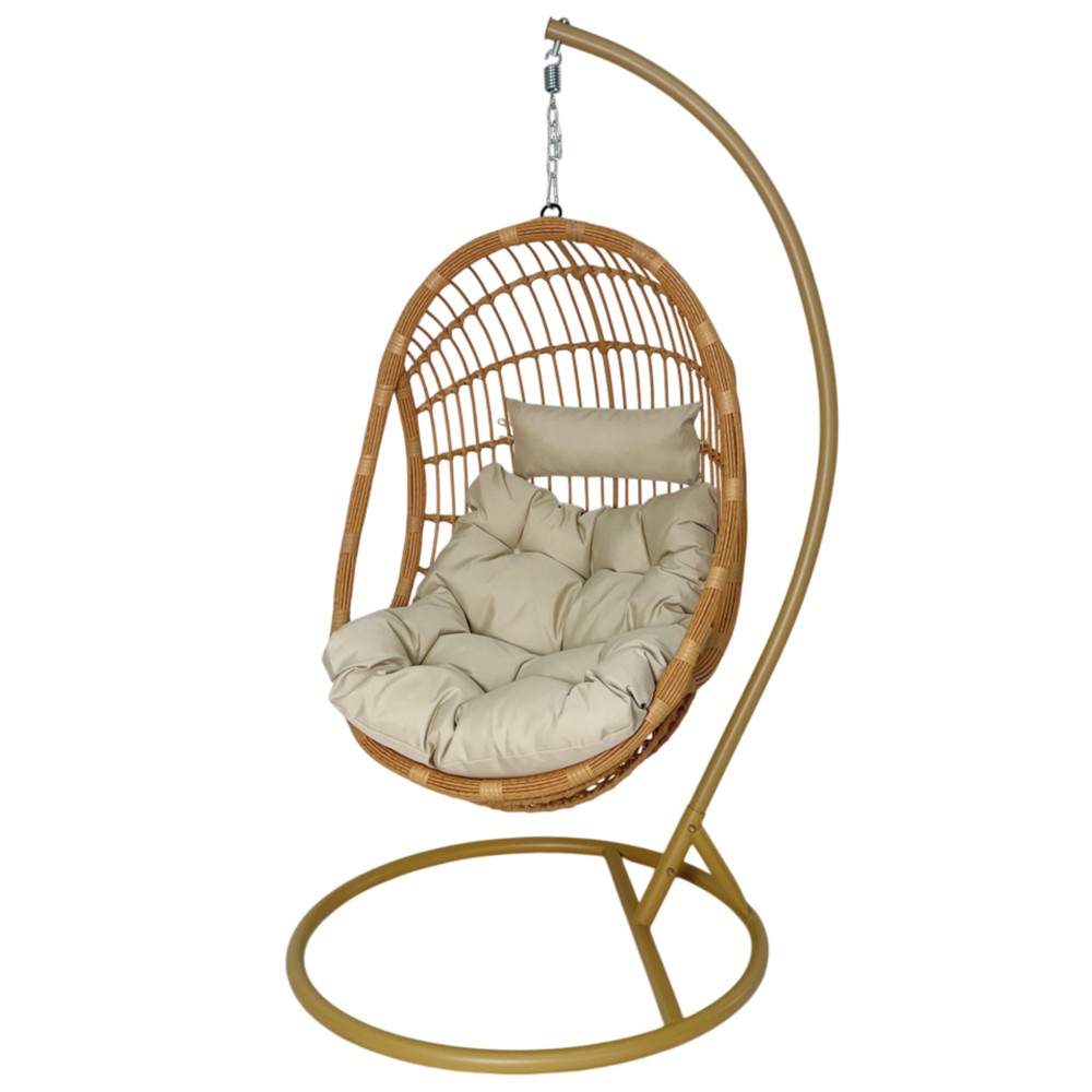 Swing, metal/PE rattan, beige frame, beige slats, basket L126xW90xD70 cm, H200 cm