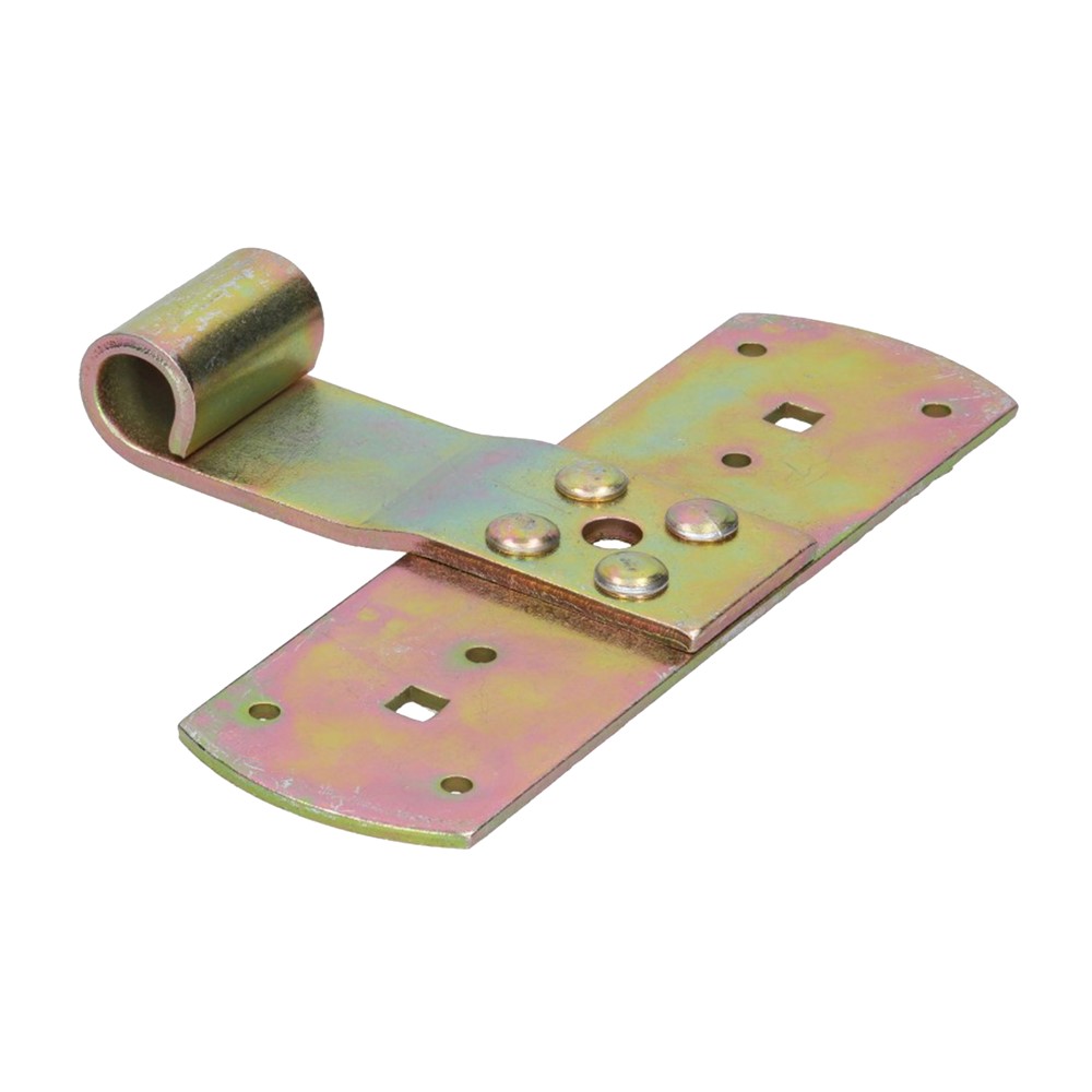T-shaped hinge, made of galvanized zinc material, with dimensions of 16.5x11x0.3 cm, in golden color. The constituent material is resistant to use, heavy weights, rust or abrasion. It can be used for the installation of shutters.