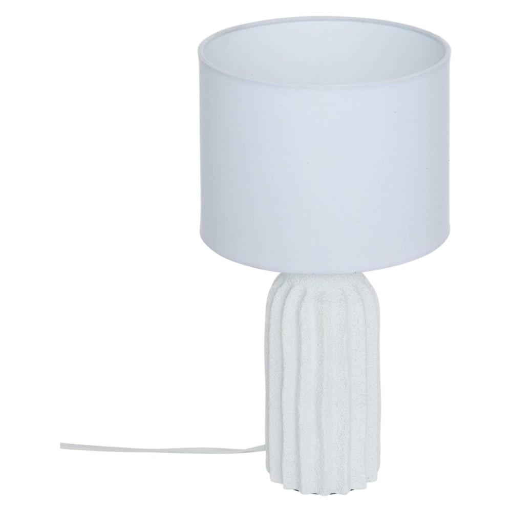 The table lamp with E14 socket is an elegant and functional choice for indoor spaces. With a height of 36 cm and a white ceramic body, it brings a clean and classic look to the space. Ideal for living rooms, bedrooms or offices, this lamp provides soft lighting and creates a warm and comfortable atmosphere.