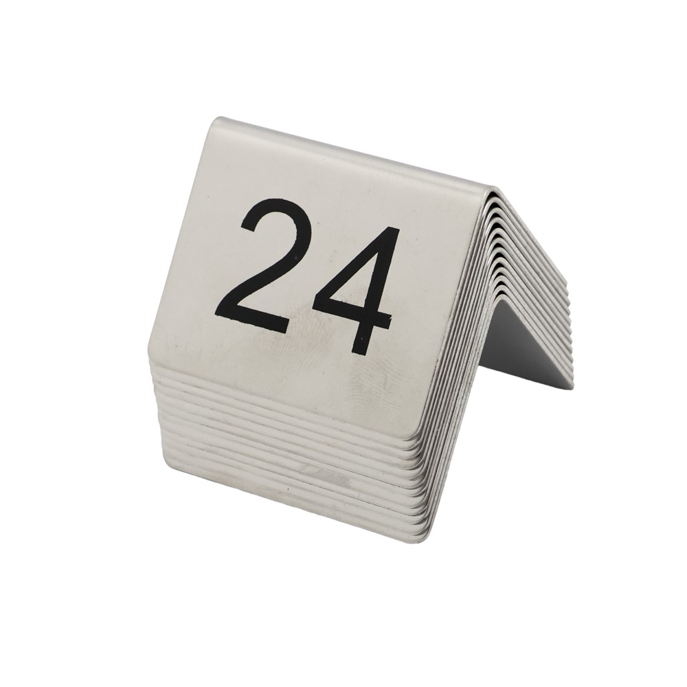 The table numbers 13–24 are made from high-quality stainless steel, featuring a silver color and a smooth finish. Measuring 5×5 cm, they are durable and highly visible, making them ideal for restaurants, cafés, and events that require professional table identification.