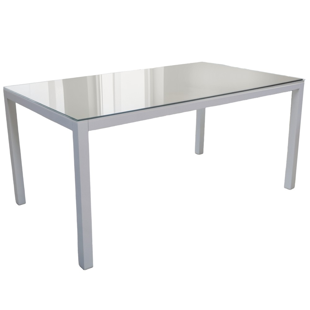 Table with tempered glass top, aluminum, matt white, 90x160xH75 cm
