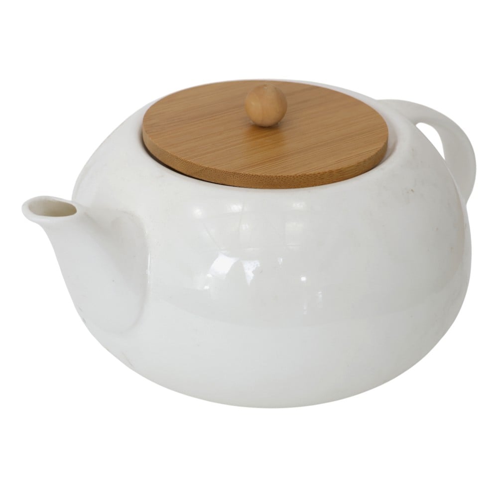 Tea pot with lid, ceramic, ceramic/bamboo, white/natural, 21x14x10 cm