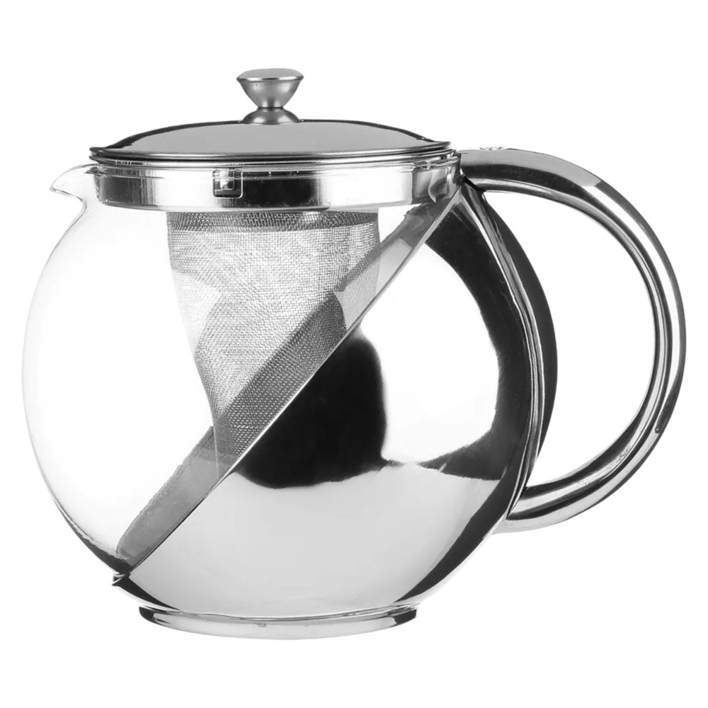 Enjoy the ritual of preparing tea with this elegant and practical teapot. Designed for functionality and style, this teapot is the ideal choice for every tea lover. The combination of transparent glass with silver-colored stainless steel elements gives it a modern and clean look, making it a beautiful accessory in your kitchen. The teapot has a removable stainless steel infuser, which is perfect for preparing loose-leaf tea. This allows you to enjoy your tea without debris and to easily remove the infuser once the tea has reached the desired strength. Made from heat-resistant glass and rustproof stainless steel, this teapot is durable, safe to use, and easy to clean.