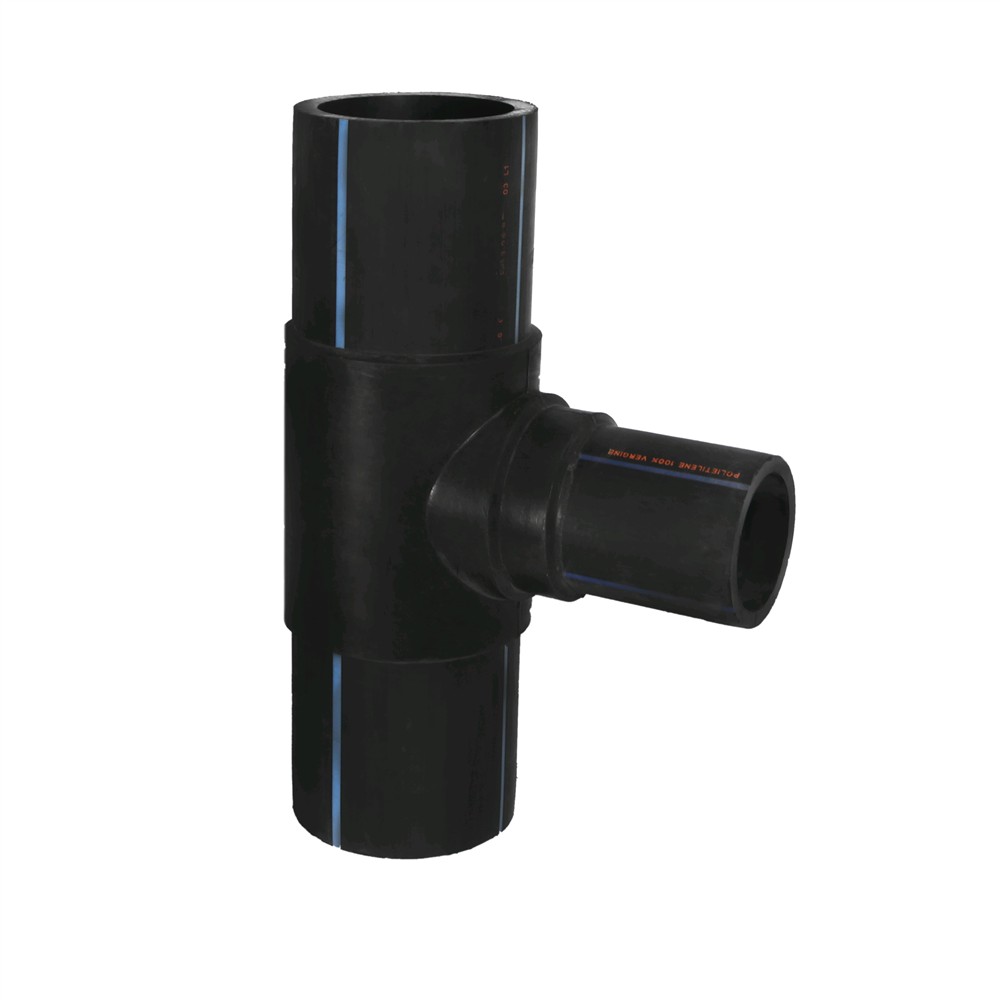 Tee reduced HDPE Ø 160x110x160mm with angle 90° used widely today in Europe for angular lines installations of water supply infrastructure and lines for the transport of natural gas. The tee reduced mounted by the method Butt-fusion. Tee enables reduced network branching of HDPE pipe Ø 110 from main pipe HDPE Ø 160. For welding HDPE pipe with tee used welding heat machinery which makes it possible merger of tee pages and pipe and through pressure enables their union. Manufactured with European standards, resistant to corrosive materials, high resistance to deformation of land and resistant to pressure up to 10 Bar.